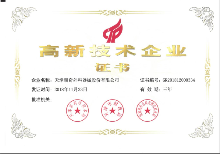 近日,瑞奇外科入选天津市2018年度第一批拟认定高新技术企业名单。